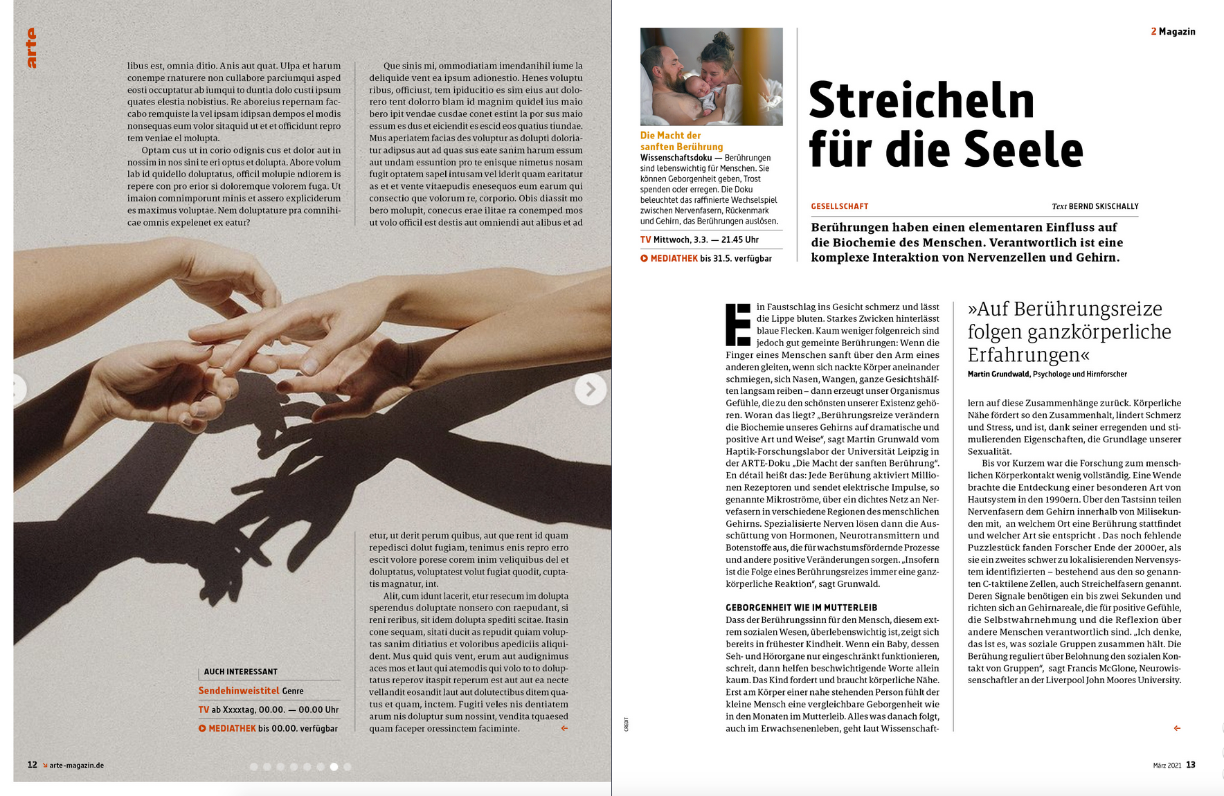 Photographs from the series A Love Story featured as the cover of Issue 3/21 of Arte Magazin, and published within an accompanying editorial inside the magazine.